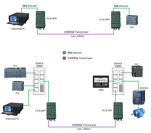 ● 可利用現(xiàn)有電話線通過FS-IE-RPT傳輸以太網(wǎng)信號(hào),通話和網(wǎng)絡(luò)通訊互不影響。