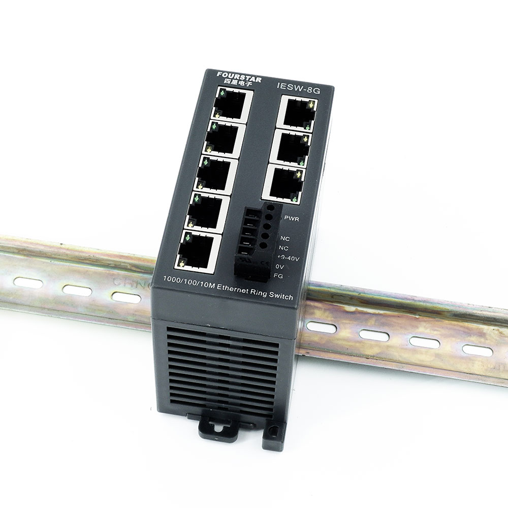 8口千兆環(huán)網(wǎng)工業(yè)以太網(wǎng)交換機。符合IEEE802.3, 10/100/1000Base-TX工業(yè)以太網(wǎng)標(biāo)準(zhǔn),網(wǎng)口速率1000M/100M/10M自適應(yīng),支持環(huán)網(wǎng)冗余拓?fù)?,具有廣播風(fēng)暴抑制功能,帶有電源、以太網(wǎng)端口狀態(tài)指示燈。各網(wǎng)口之間及電源端口相互隔離,工業(yè)級標(biāo)準(zhǔn)設(shè)計,DIN35mm標(biāo)準(zhǔn)導(dǎo)軌安裝或螺栓固定安裝,-40~+85℃工業(yè)級寬溫型。可廣泛的用于PLC、HMI、VVVF、DCS等各種基于工業(yè)以太網(wǎng)的工控設(shè)備。
