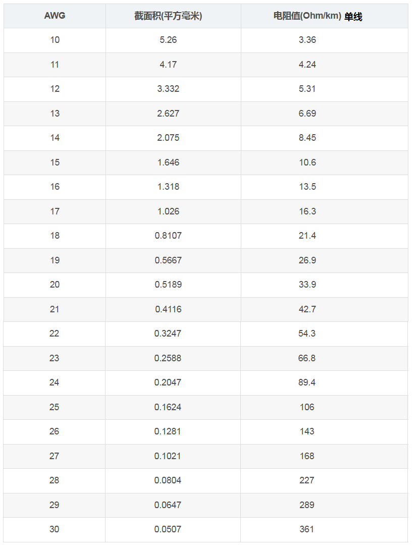 下面是美規(guī)線的截面積與電阻值(單根線)對(duì)照表: