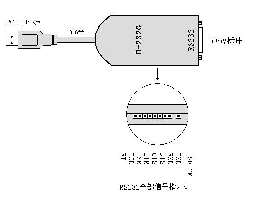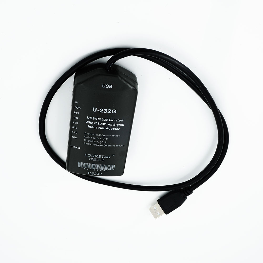 USB到RS232全線隔離轉換器,帶全部RS232信號(TXD、RXD、RTS、CTS、DTR、DSR、DCD、RI)指示燈,波特率300bps~1Mbps自適應,工業級標準設計,支持各種PLC等工控設備。