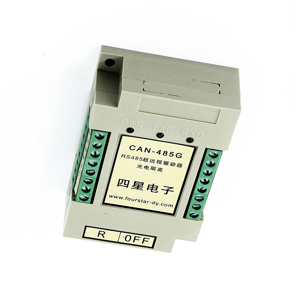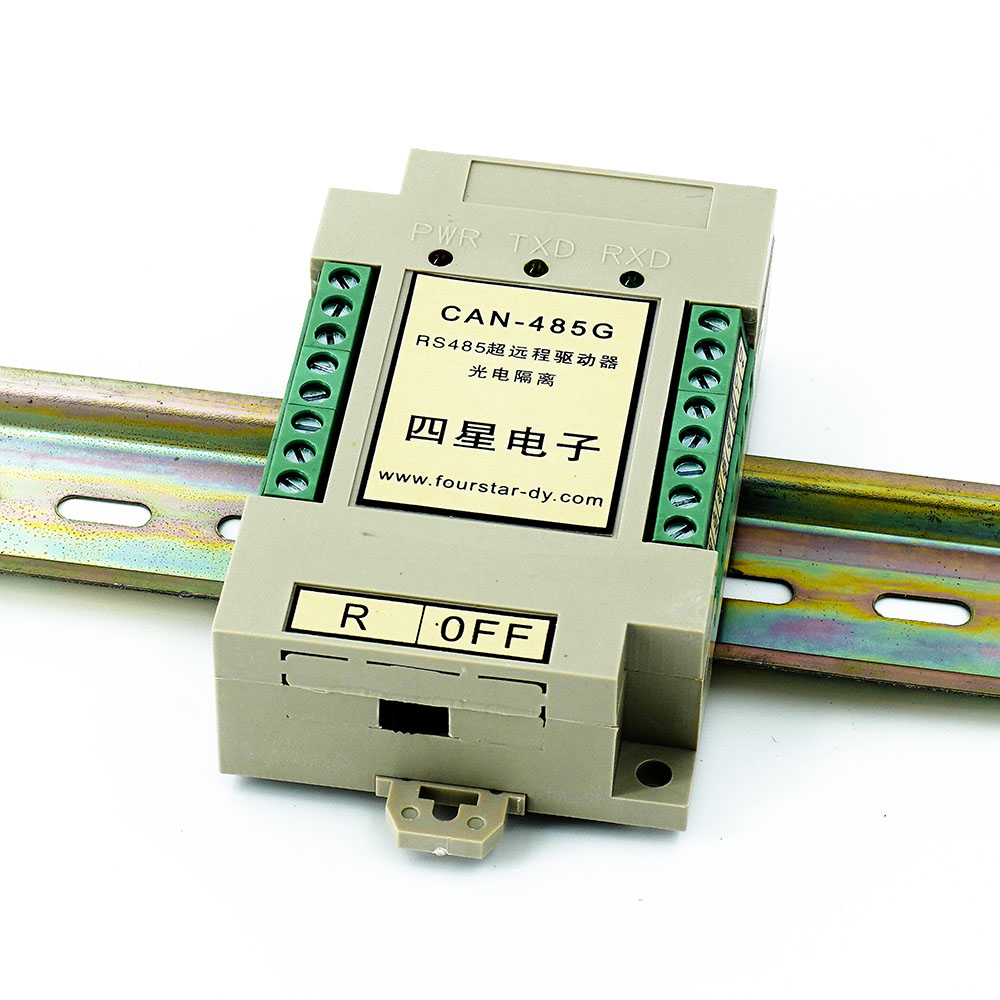 RS485/RS422通用光隔離超遠程驅動器,采用不改變RS485協議(軟件)的CAN驅動器,只需二根線即可將RS485/RS422通訊距離延長10km(4800bps時)、5km(9600bps時),支持110個RS485節點組網,解決了野外使用中繼器加電源的麻煩,外接5V電源。外形為導軌安裝的工業結構,帶指示燈。