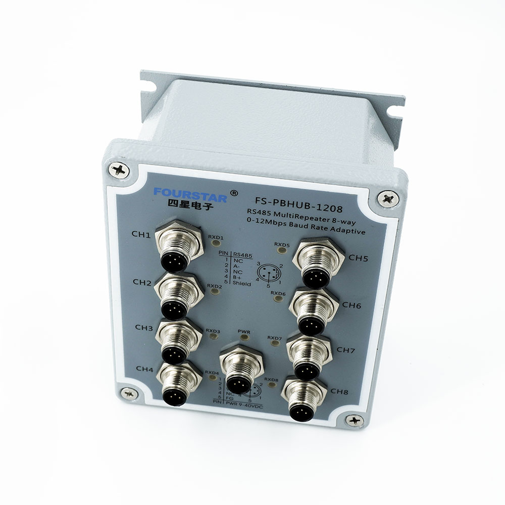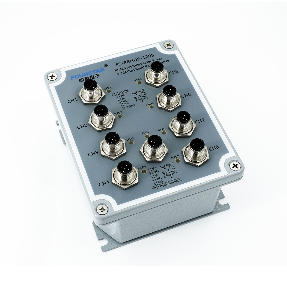 M12接口防水堅固型8口PROFIBUS集線器。可實現PROFIBUS總線型、星形和混合型網絡拓撲結構,方便網絡布線,無延時數據透明傳輸,雙向延長通信距離和增加站點數符合PROFIBUS標準,速率0~1.5Mbps(或0~12Mbps)自適應,該產品還支持任何基于RS485的上層協議。帶通信指示燈,9~40VDC寬電壓隔離供電,電源-RS485-RS485全隔離,防雷擊浪涌。接口為M12插座,背板螺栓安裝。