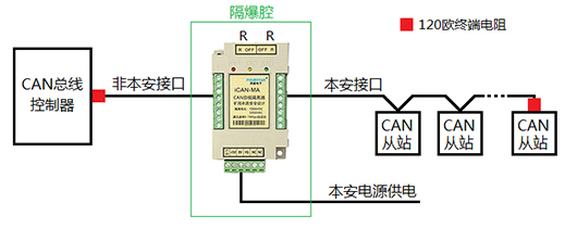 終端電阻 | 兩個CAN口內(nèi)部設(shè)計有120歐終端電阻,由撥動開關(guān)選擇。 |