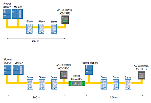 ● 將AS-Interface電纜傳輸距離從100米延長到200米。