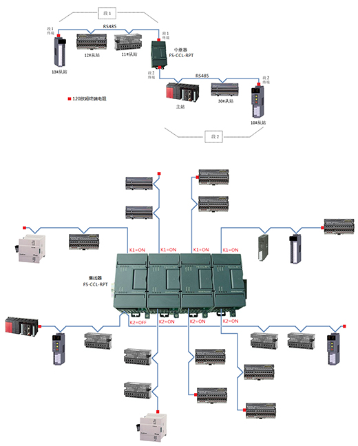 可擴展數量 | 單個使用作為中繼器,N個可組合成2N口集線器。最多可以擴展10臺FS-CCL-RPT組合成20口集線器。 |