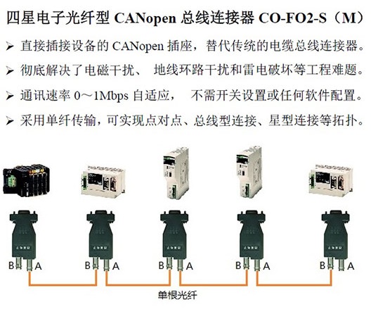 光纖型CANOpen總線連接器,1電2光,多模單纖。