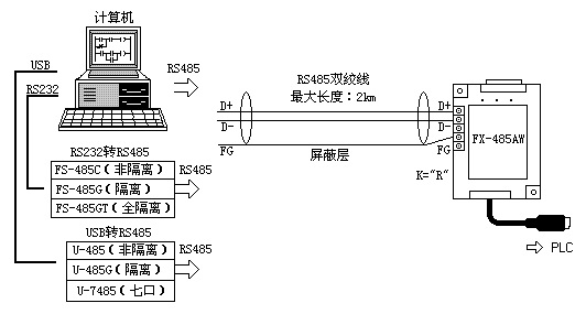 三菱FX0N/FX1N/FX2N/FX3U/FX3G...系列PLC編程口RS422轉RS485和RS232,光電隔離,防雷擊浪涌,最大通信距離2公里,標準導軌安裝。是FX-232AW、FX-232AWC、FX-232AWC-H的升級換代產品。