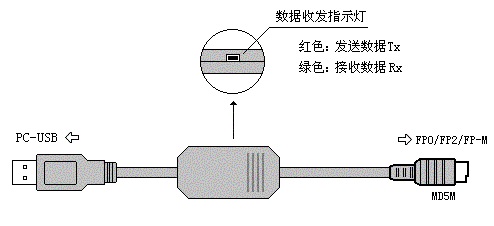 USB接口的松下FP0、FP2、FP-M系列PLC編程電纜,3米,帶通信指示燈,適合所有軟件。