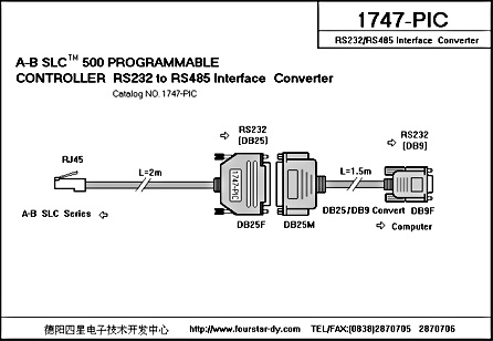 A-B SLC5系列PLC編程通訊接口電纜,RS232/DH-485接口,3米。